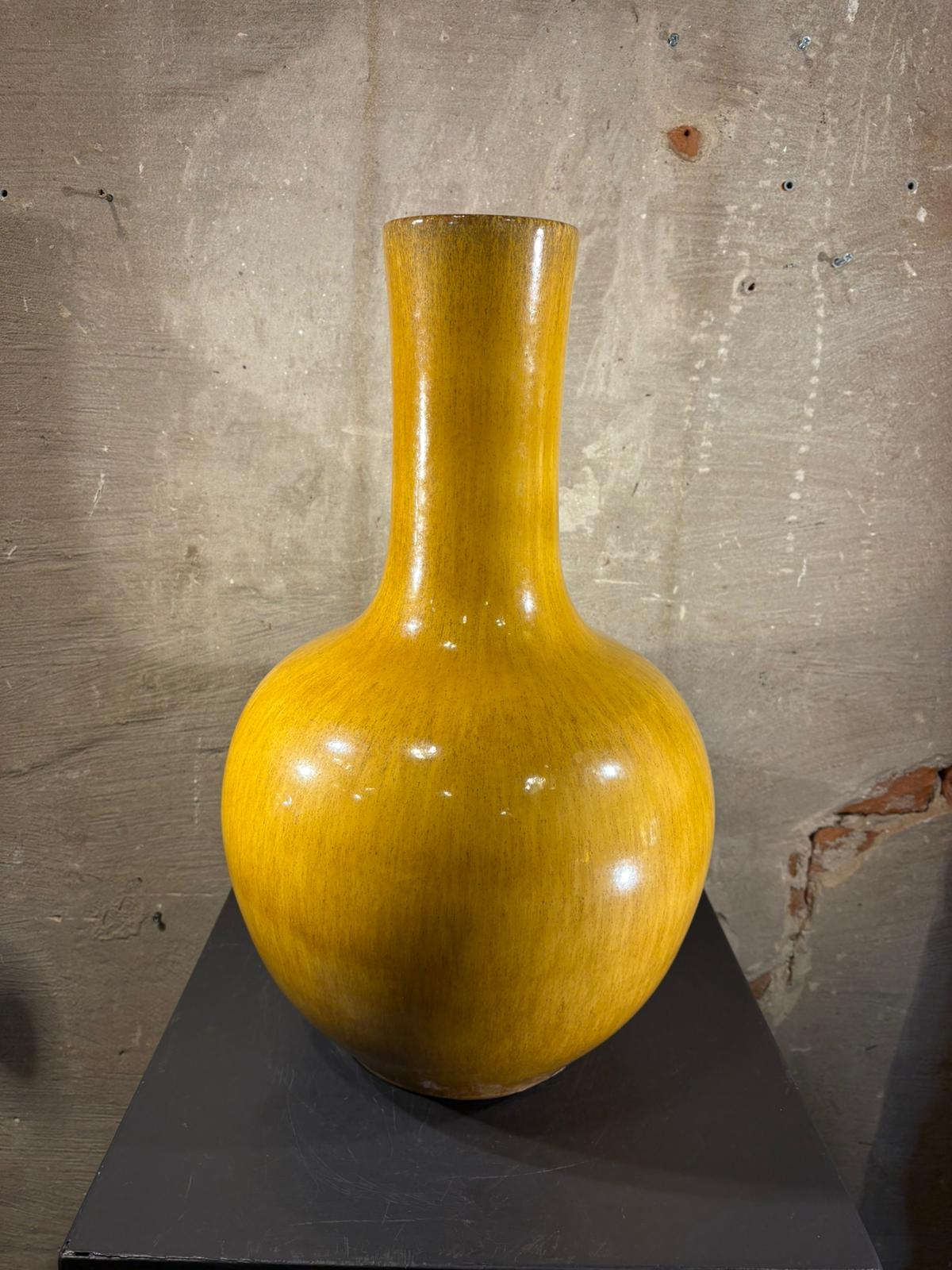 Aardewerk vaas okergeel