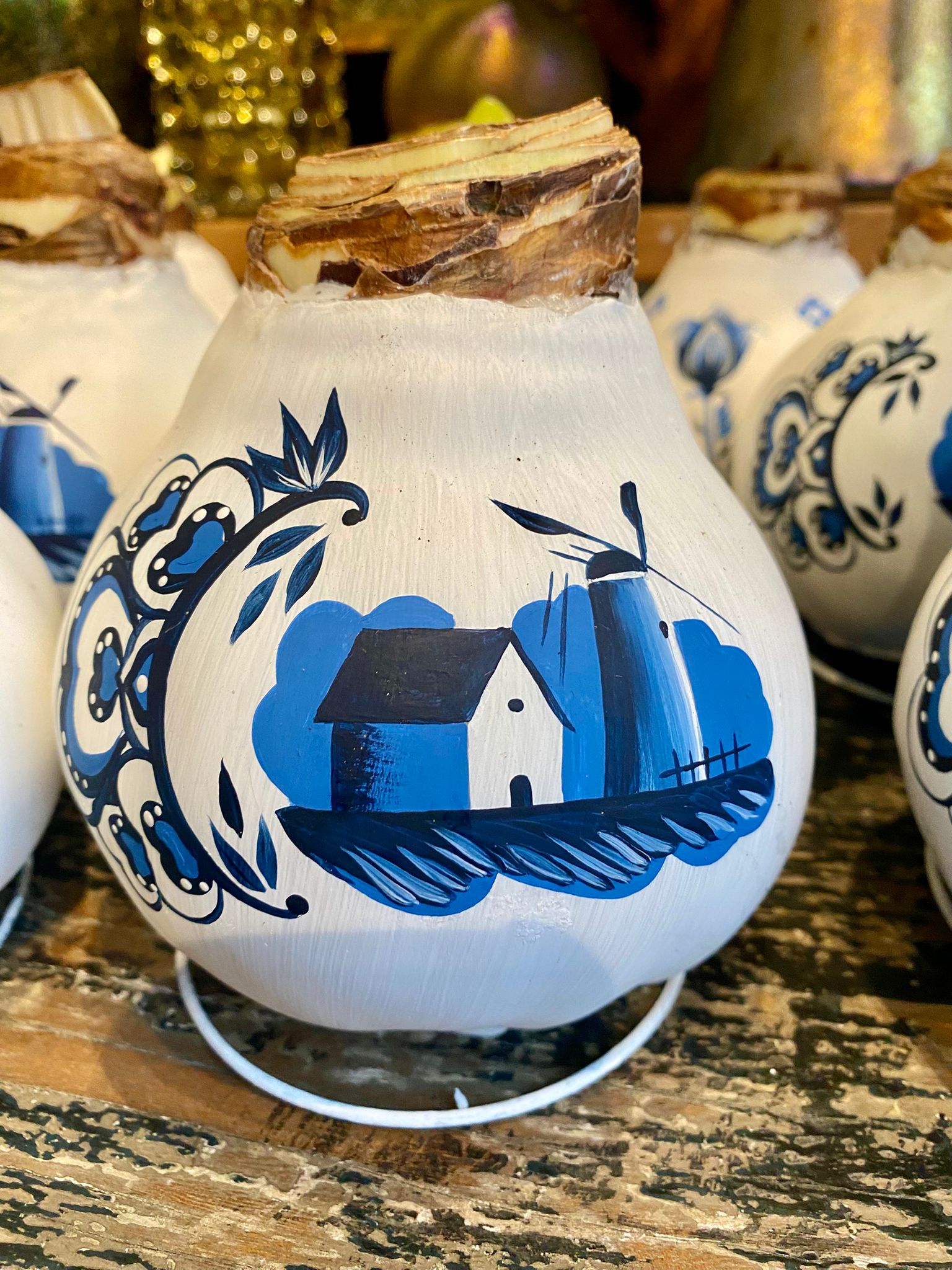 Amaryllis wax bol Delfts blauwe kleuren met molen en huisje
