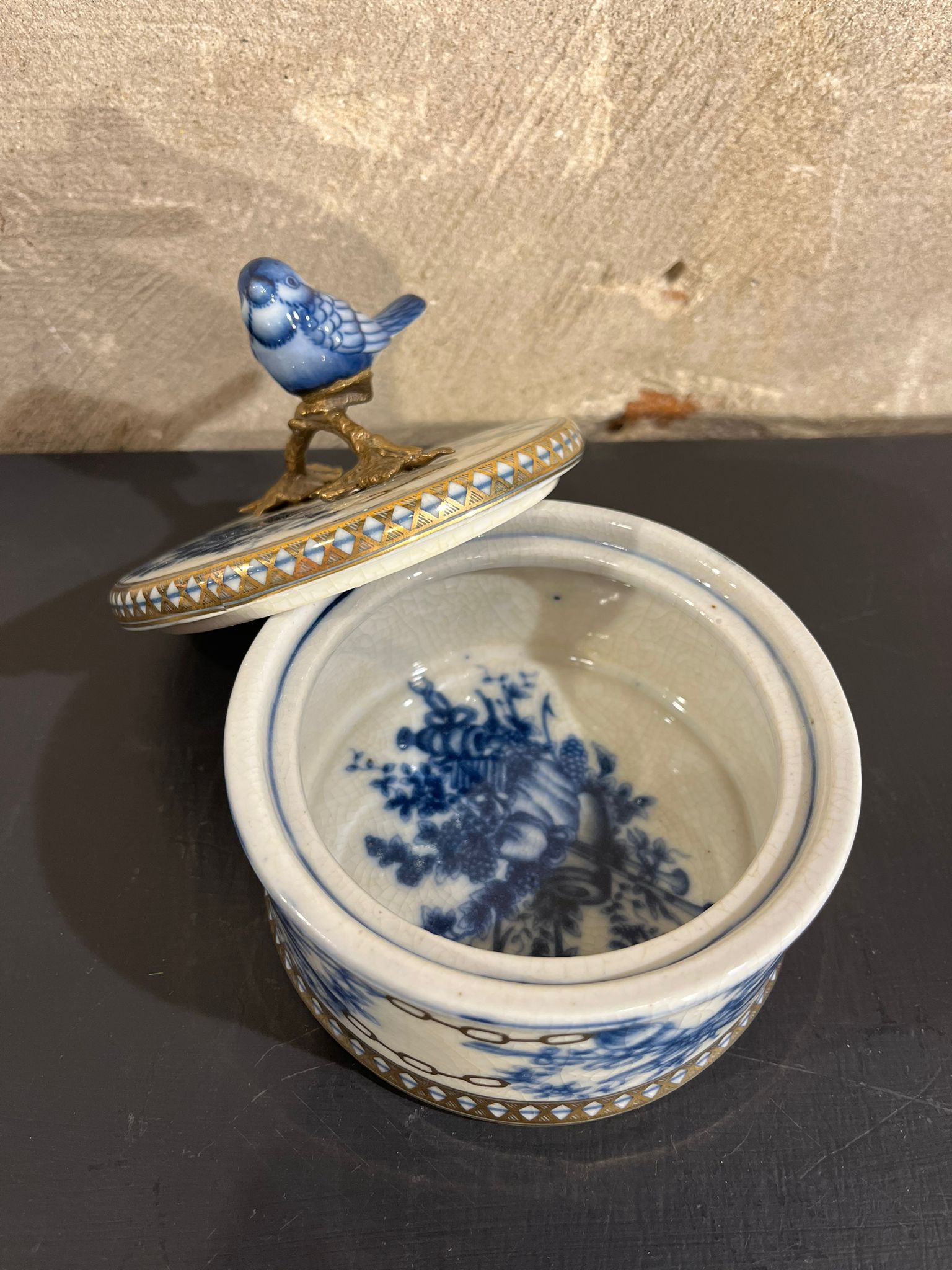 Doosje met deksel vogel rond