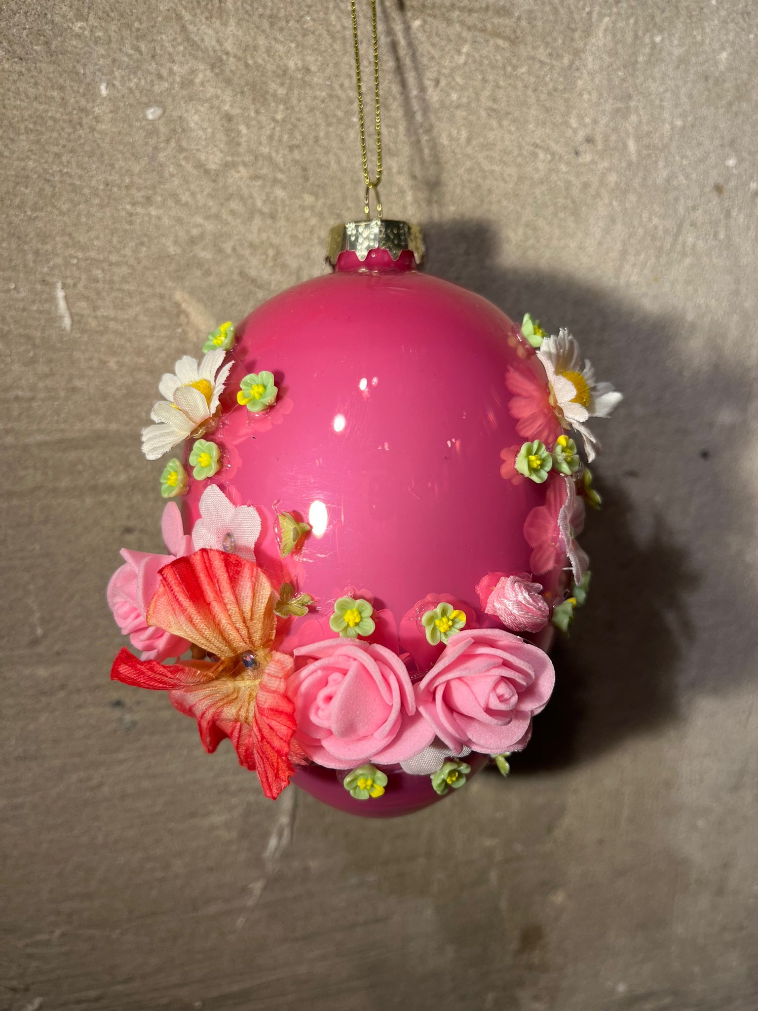 Paashanger ei pink met bloemen