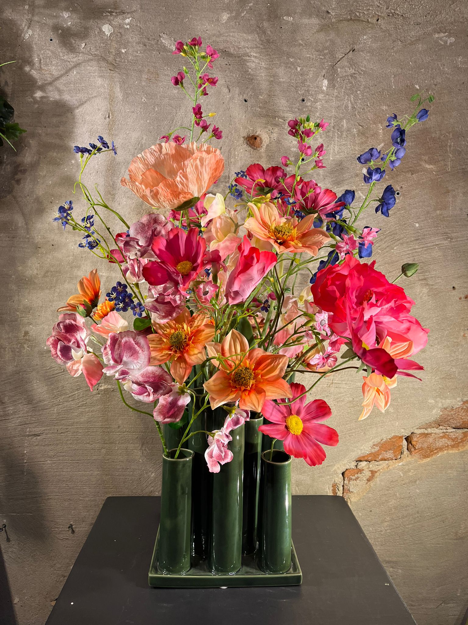Zijden boeket met groene vaas